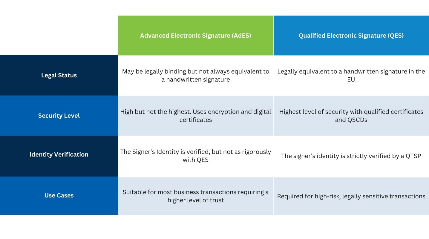 Vergleich von AdES und QES: Die Hauptunterschiede