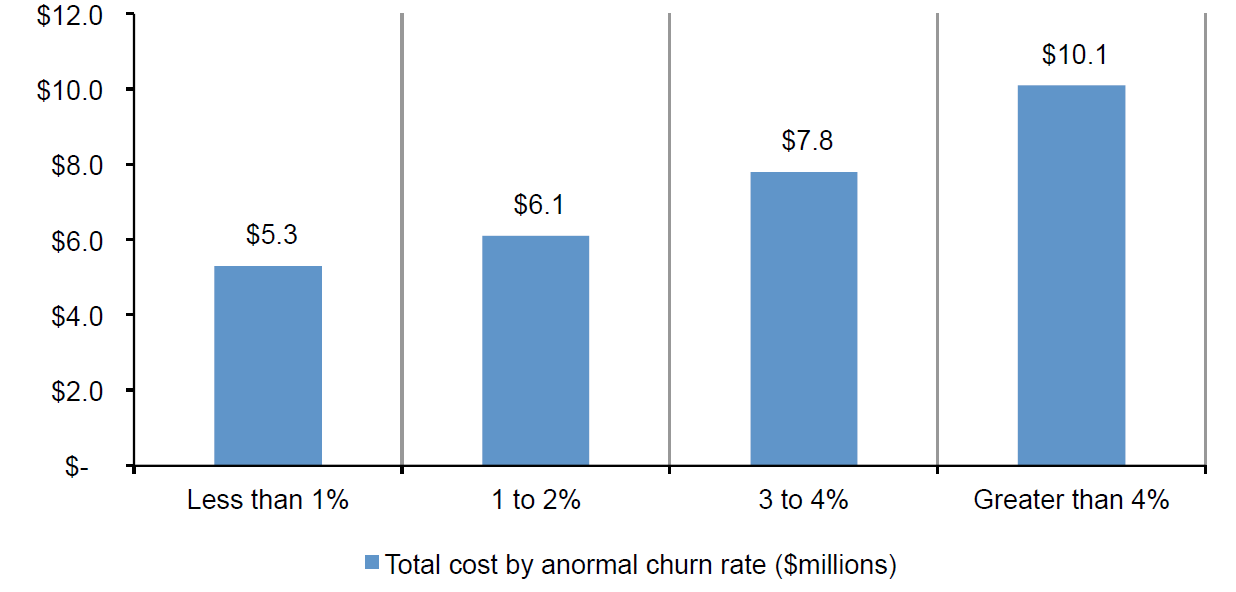 Gesamtkosten nach unnormaler Abwanderungsquote, entnommen aus der 2017 Cost of Data Breach Study des Ponemon Institute