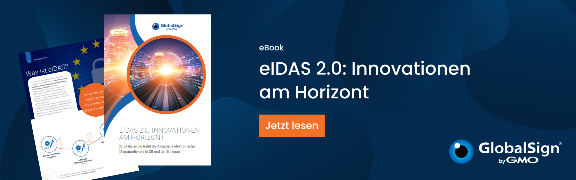 Um mehr über anstehende eIDAS 2.0-Innovationen zu erfahren und darüber, wie die Digitalisierung die Annahme elektronischer Signaturdienste sowohl in der EU als auch in Großbritannien vorantreibt, lesen Sie GlobalSigns eBook.