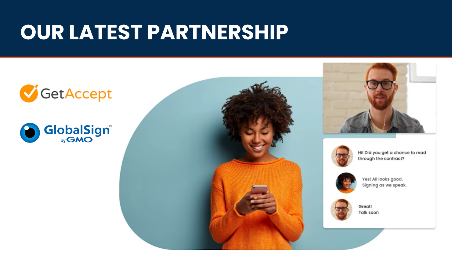 BOSTON, Massachusetts, 12. Juli/19. Juli 2022 – GlobalSign (https://www.globalsign.com/de), eine globale Zertifizierungsstelle (CA) und führender Anbieter von digitalen Signier-, Identitäts- und Sicherheitslösungen für das IoT, gab heute bekannt, dass die führende Digital Sales Room Plattform GetAccept in GlobalSigns Digital Signing Service integriert wurde. Dadurch kann GetAccept die User Experience optimieren und vereinfachen, digitale AATL-Signaturen ermöglichen und wichtige Branchenanforderungen erfüllen.