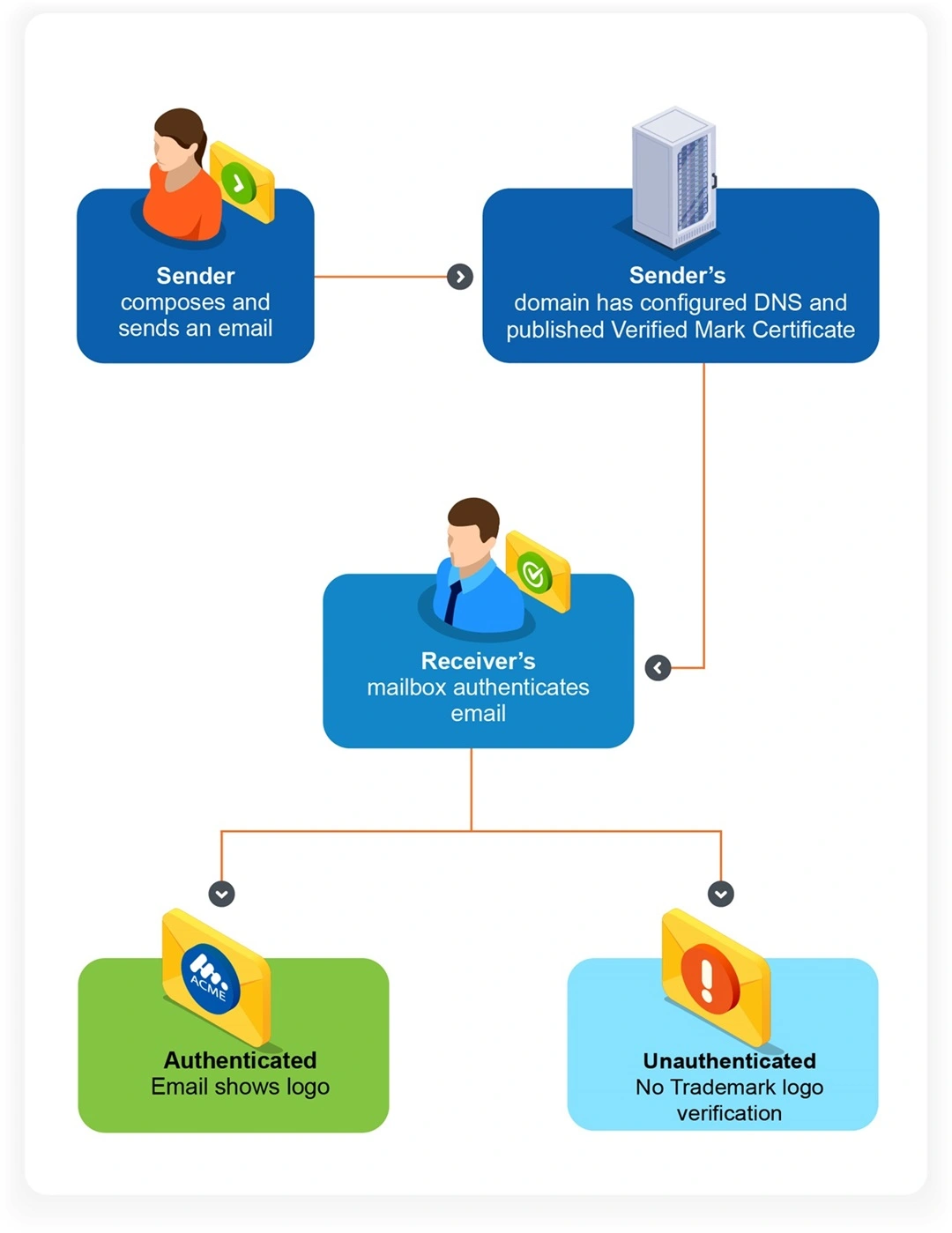 - Verified Mark Certificate (VMC): For trademarked logos. Shows your verified checkmark and proves you’re the official brand owner, making your emails nearly impossible to spoof.