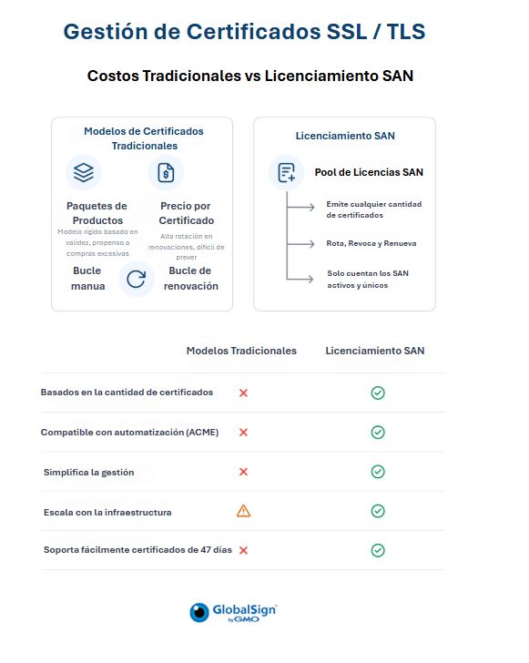 A medida que la industria avanza hacia ciclos de vida de certificados de 47 días, el licenciamiento SAN ofrece una transición fluida, aplicando los mismos términos de licencia independientemente de si los certificados se emiten por un año o solo por 47 días.