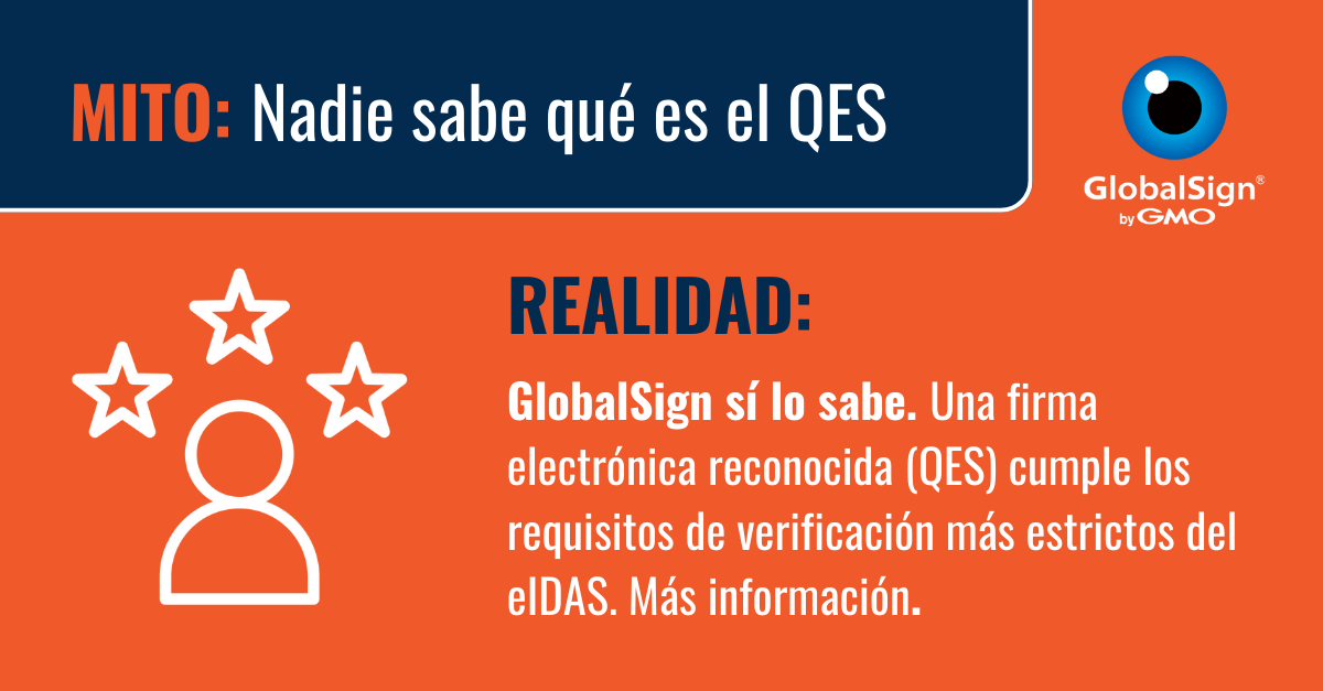 GlobalSign recomienda las firmas electrónicas cualificadas (QES) a las organizaciones que operan en Europa, ya que cumplen los requisitos de verificación más estrictos del eIDAS. Una QES es una firma digital creada mediante un certificado digital cualificado y un dispositivo de creación de firmas cualificado (QSCDP), emitido por un proveedor de servicios de confianza cualificado (QTSP).