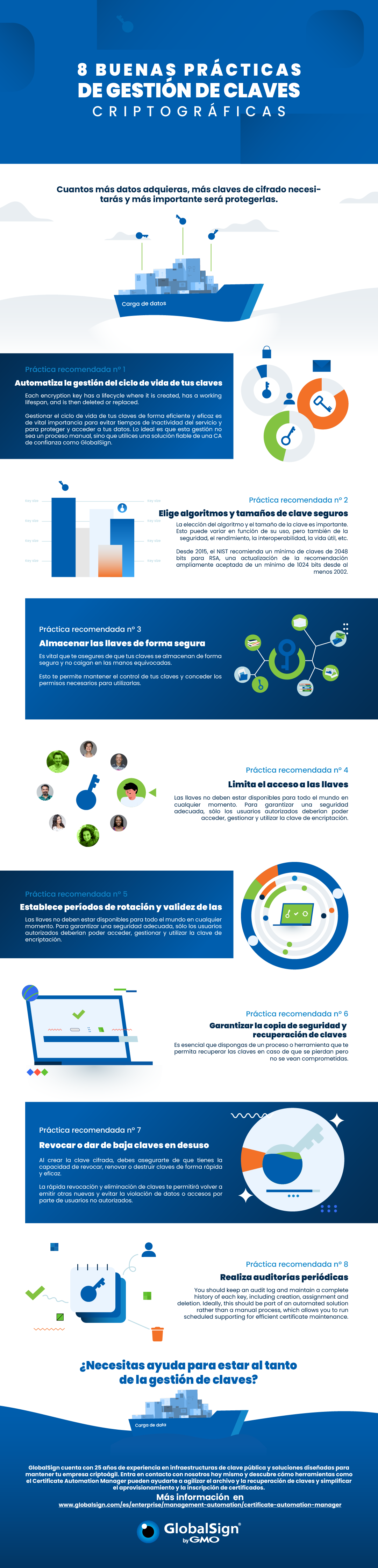 Es fundamental garantizar que las claves criptográficas estén protegidas y seguras. Si una clave se viera comprometida y no fuera revocada a tiempo, podría poner en riesgo la seguridad empresarial y provocar un incidente.