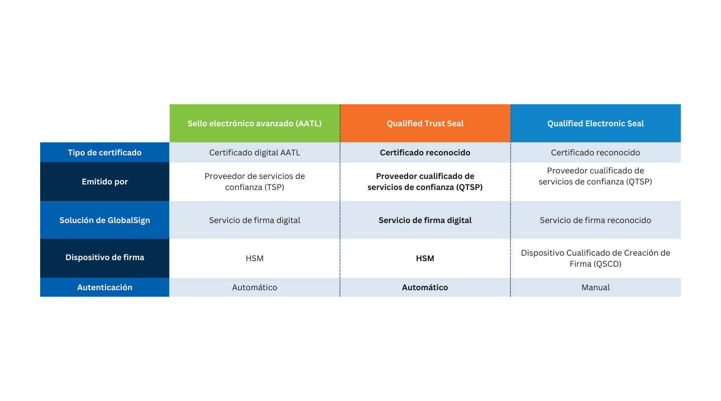En 2023, GlobalSign introdujo otra opción en el mercado, los sellos de confianza cualificados. Los "sellos de confianza cualificados" son similares a los sellos electrónicos avanzados, pero la principal diferencia es que se emiten mediante un certificado cualificado. Debido a esto, llevan la confianza de identidad hasta un nivel cualificado que cumple con el reglamento eIDAS (910/2014 Anexo III) y son de confianza EUTL. Debido a esto, llevan la confianza hasta un nivel cualificado que cumple con el reglamento eIDAS (910/2014 Anexo III) y son de confianza EUTL.