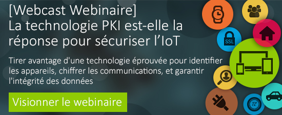 Vous retrouverez sur notre site web plus d’informations sur l’émergence de l’Internet des Objets et les façons de sécuriser les terminaux mobiles et autres objets connectés. Notre webinaire « PKI pour l'Internet des objets » montre par ailleurs comment identifier les équipements, chiffrer les communications et assurer l’intégrité des données à l’aide d’une technologie qui a déjà fait ses preuves.