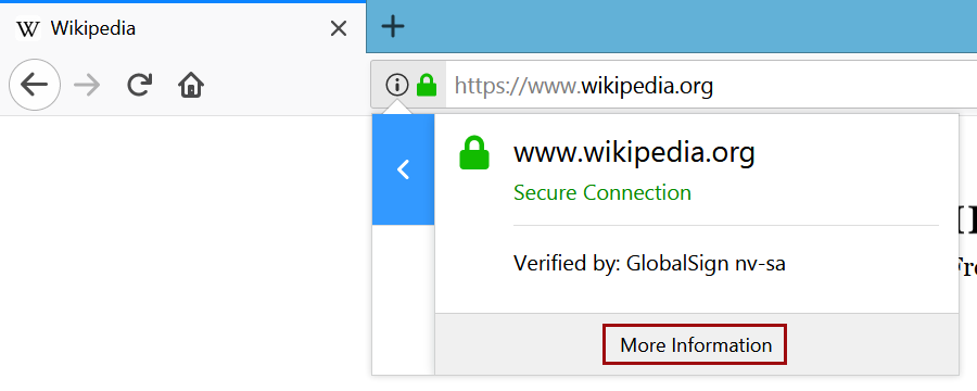 De nieuwste versie van Firefox biedt wat meer informatie over het certificaat in de interface van de hoofdbrowser en u hebt de mogelijkheid om met enkele klikken meer gegevens op te duiken.