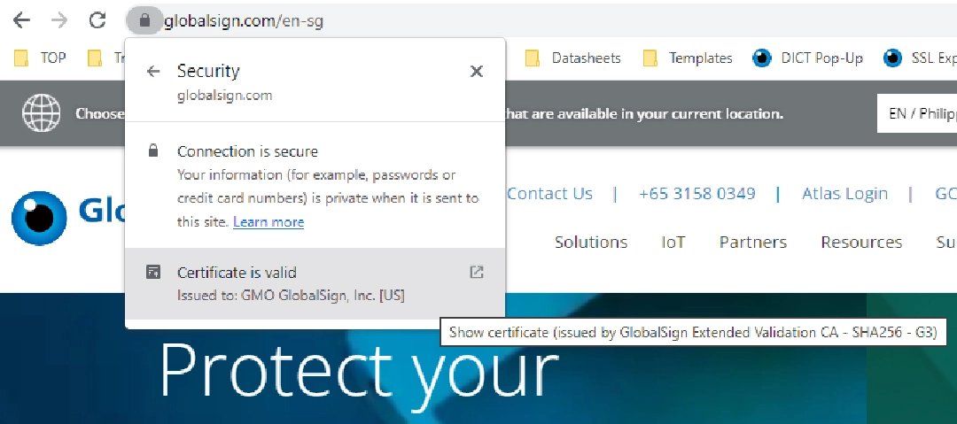- คลิกไอคอนใบรับรองที่อยู่ตรงข้าม การเชื่อมต่อมีความปลอดภัย